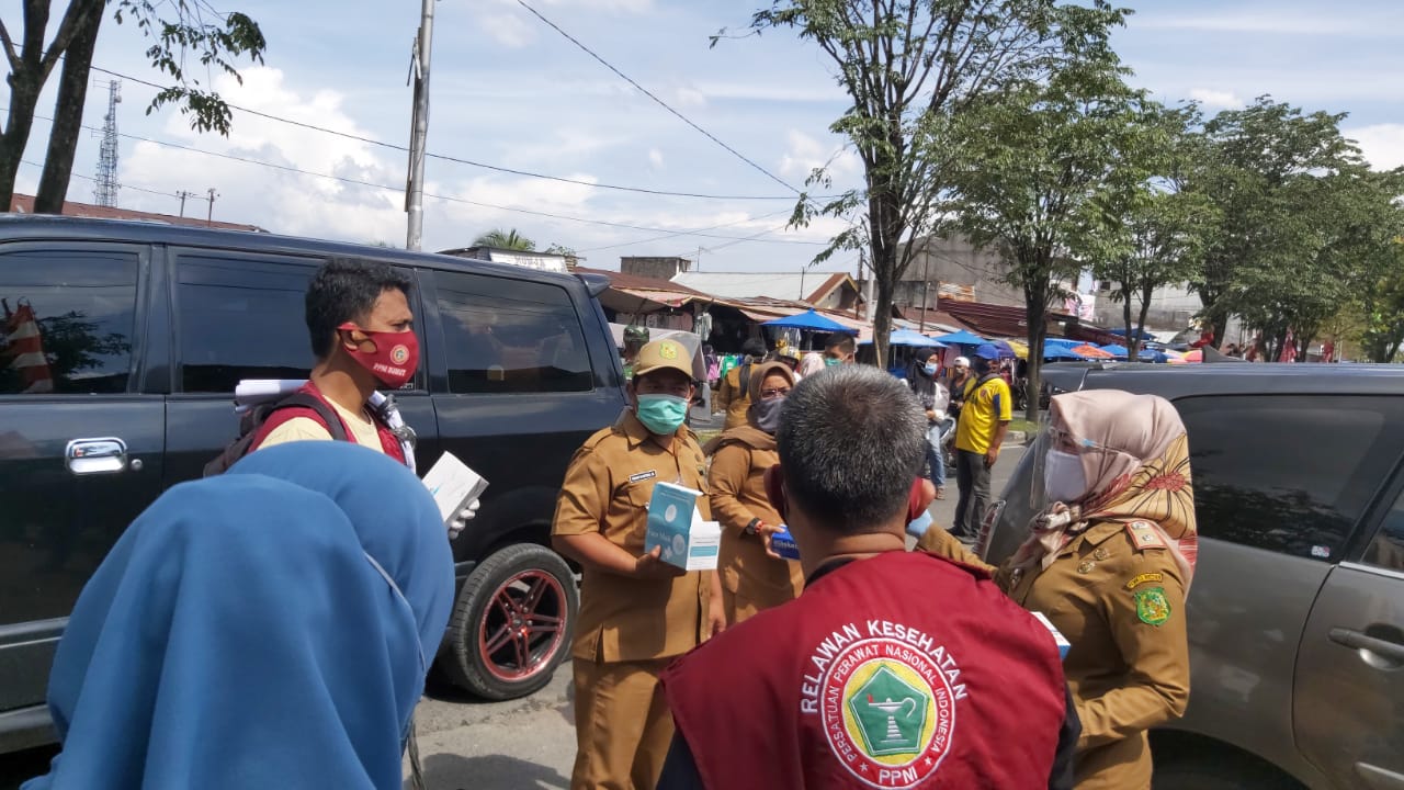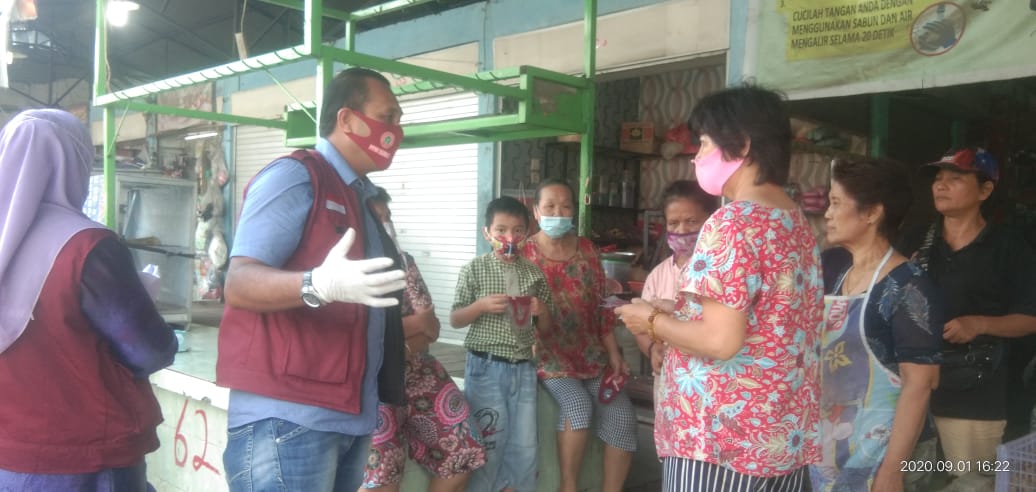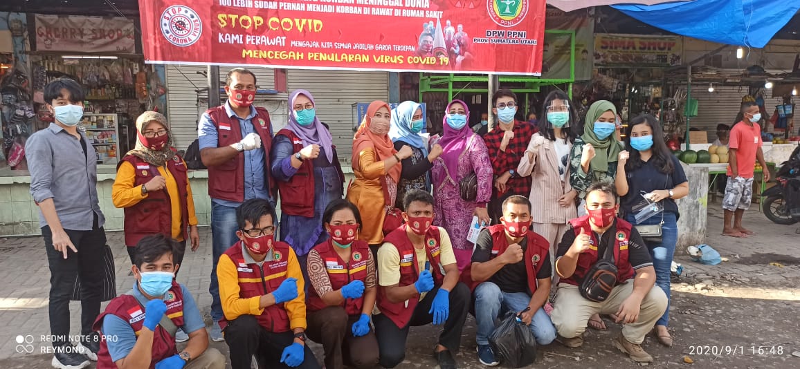 Panas terik yang menyengat pada hari Selasa tanggal 1 September 2020, jam 14.00 tidak mengurangi semangat para relawan yang tergabung dalam Forum Organisasi Profesi Kesehatan Sumatera Utara, melakukan Sosialisasi protokol kesehatan Covid-19 di Pasar Tradisional di Medan.