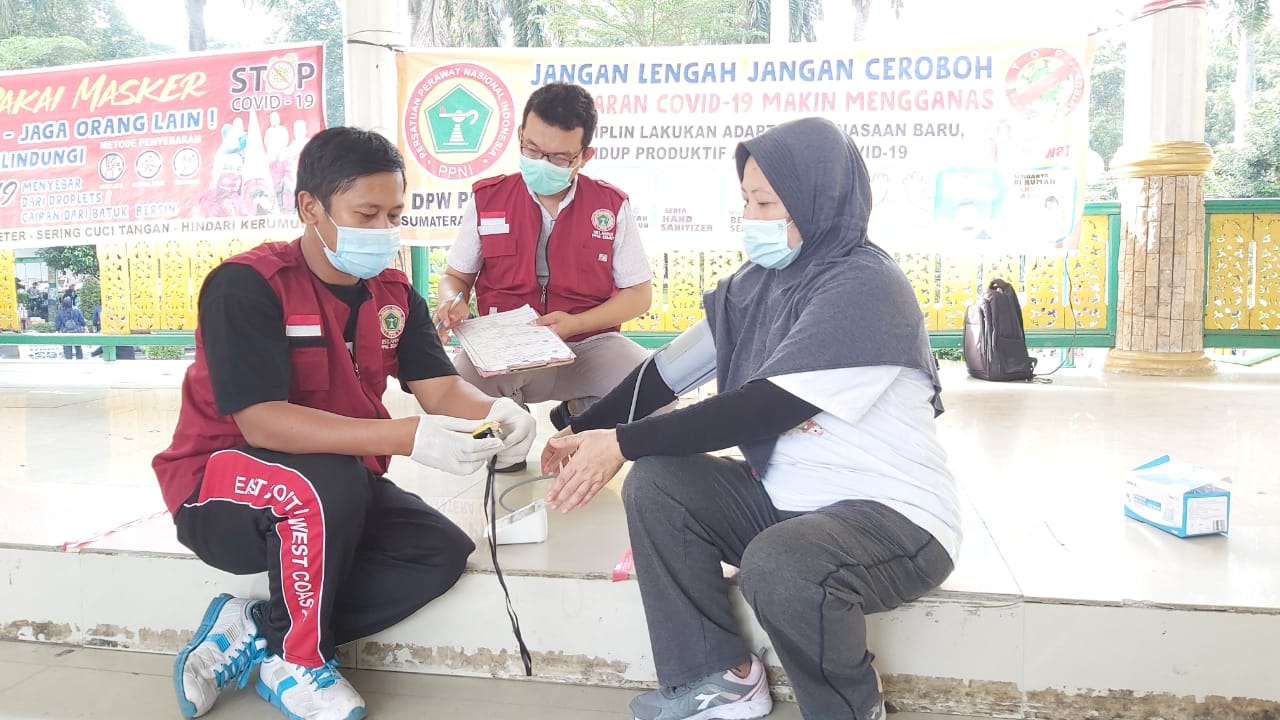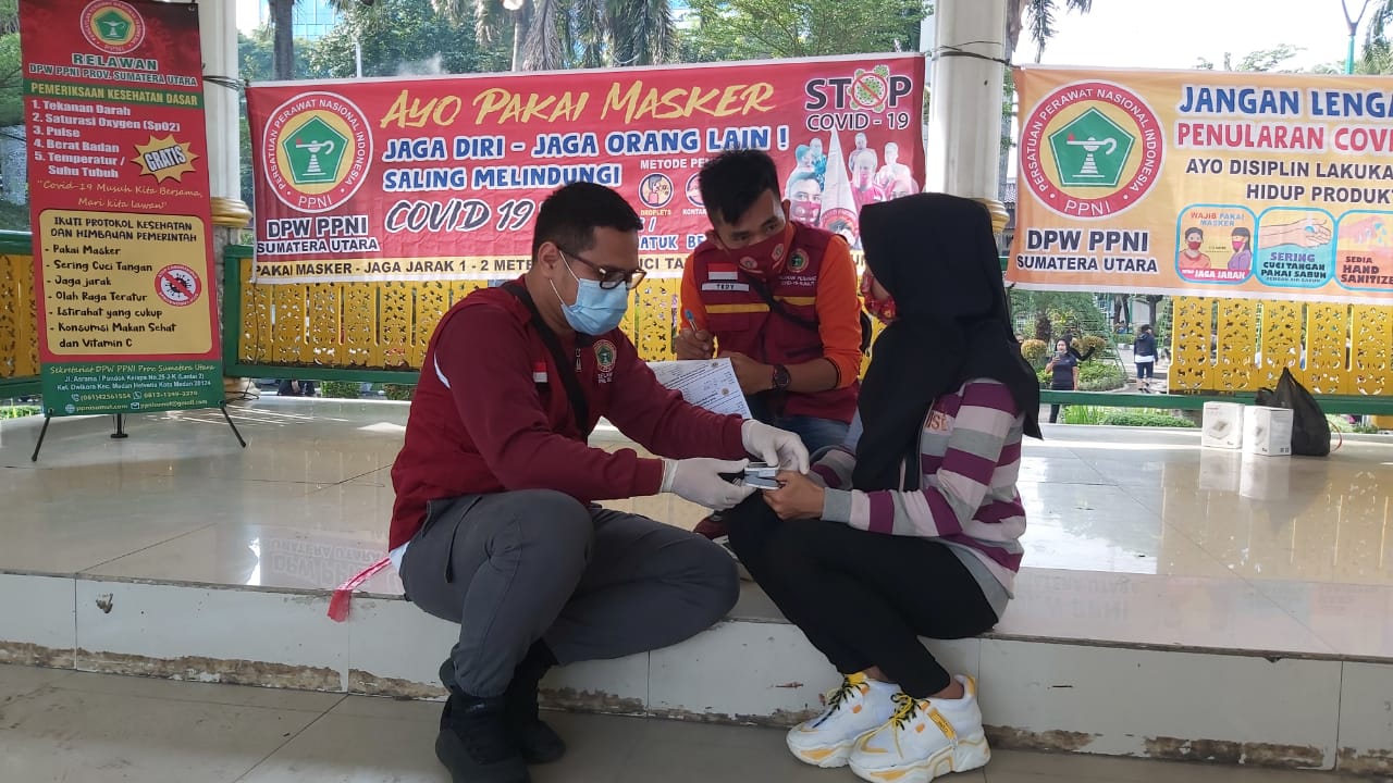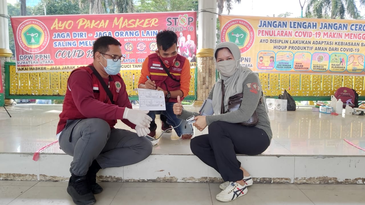Kondisi Pandemi Covid-19 semakin laju, semakin hari semakin mengganas menjangkiti warga Sumatera Utara.Hal tersebut tidak mengurangi tekad para relawan Dpw Ppni Provinsi Sumatera Utara untuk terus mengabdikan diri dalam pelayanan kesehatan rutin setiap minggu pagi di pendopo lapangan merdeka-medan.