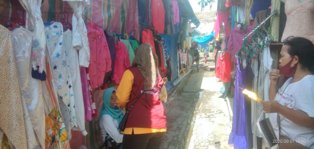 Kegiatan sosialisasi & himbauan pakai masker kali ini, dipimpin langsung Ibu Lurah Tanjung Selamat, memasuki lorong lorong di pasar tradisional yang terkenal di kota medan sebagai pusat dagangan pakaian bekas,gorden bekas, serta hasil pertanian.