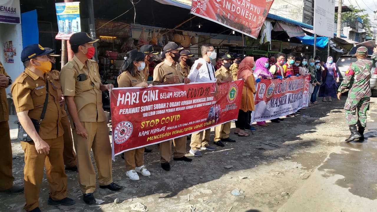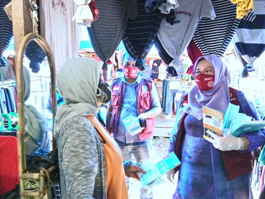 Panas terik yang menyengat pada hari Selasa tanggal 1 September 2020, jam 14.00 tidak mengurangi semangat para relawan yang tergabung dalam Forum Organisasi Profesi Kesehatan Sumatera Utara, melakukan Sosialisasi protokol kesehatan Covid-19 di Pasar Tradisional di Medan.
