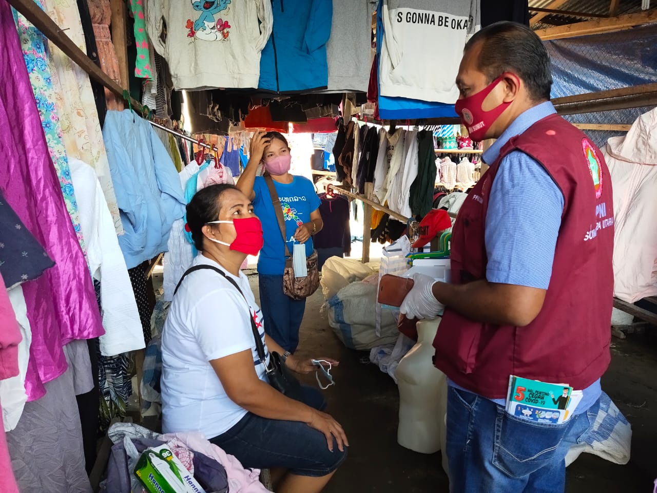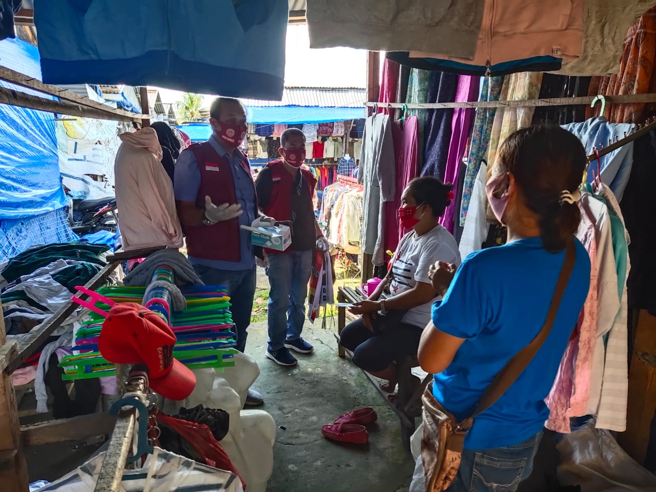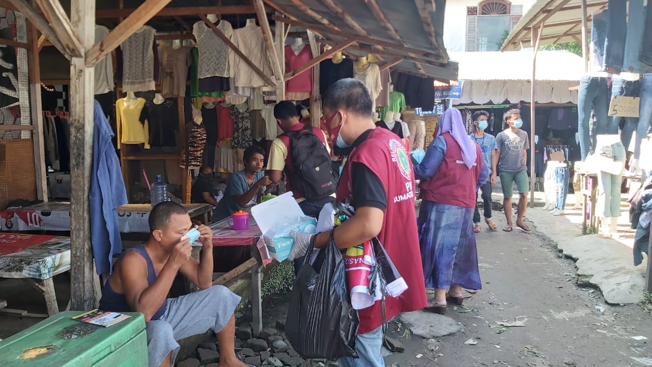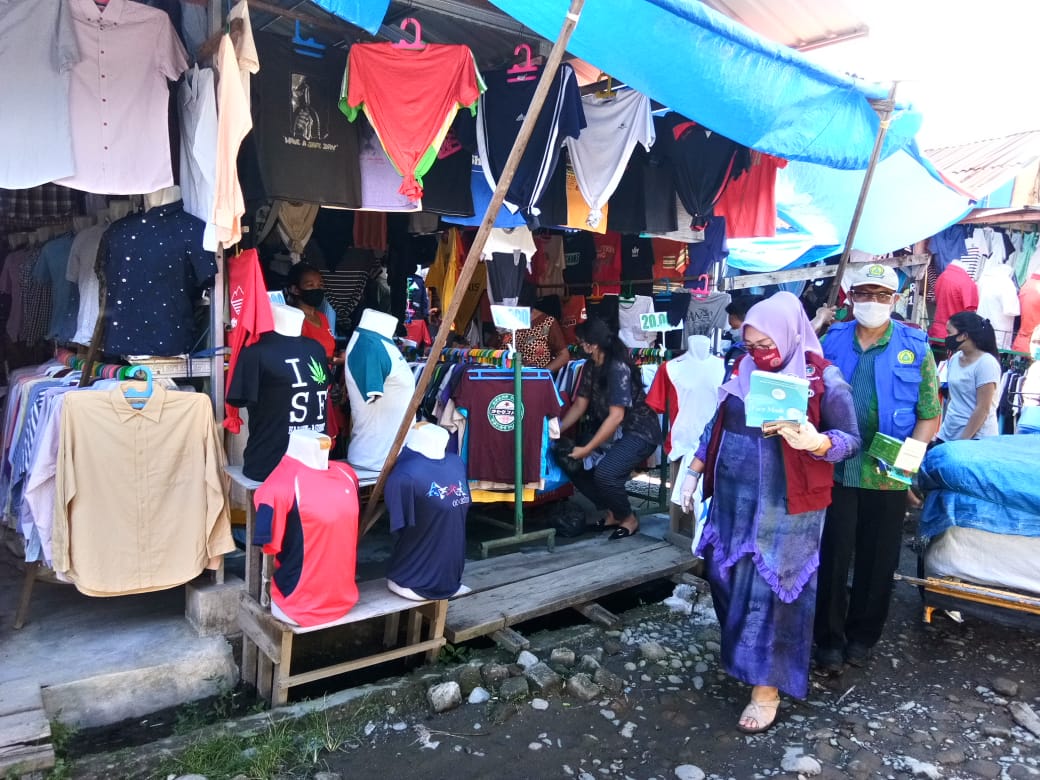 Dalam kesempatan tsb ibu lurah menyampaikan bahwa para pedagang di pasar tsb sdh dilakukan pembinaan utk selalu pakai masker, tetapi krn hari panas terik pada siang itu, Masih banyak para pedagang & pengunjung yang belum memakai masker. Saat para relawan bertanya, mengapa tidak pakai masker, serta mengapa masker di lepas, mereka menjawab, karena panas yang menyengat, membuat terasa sesak, bila pakai masker.