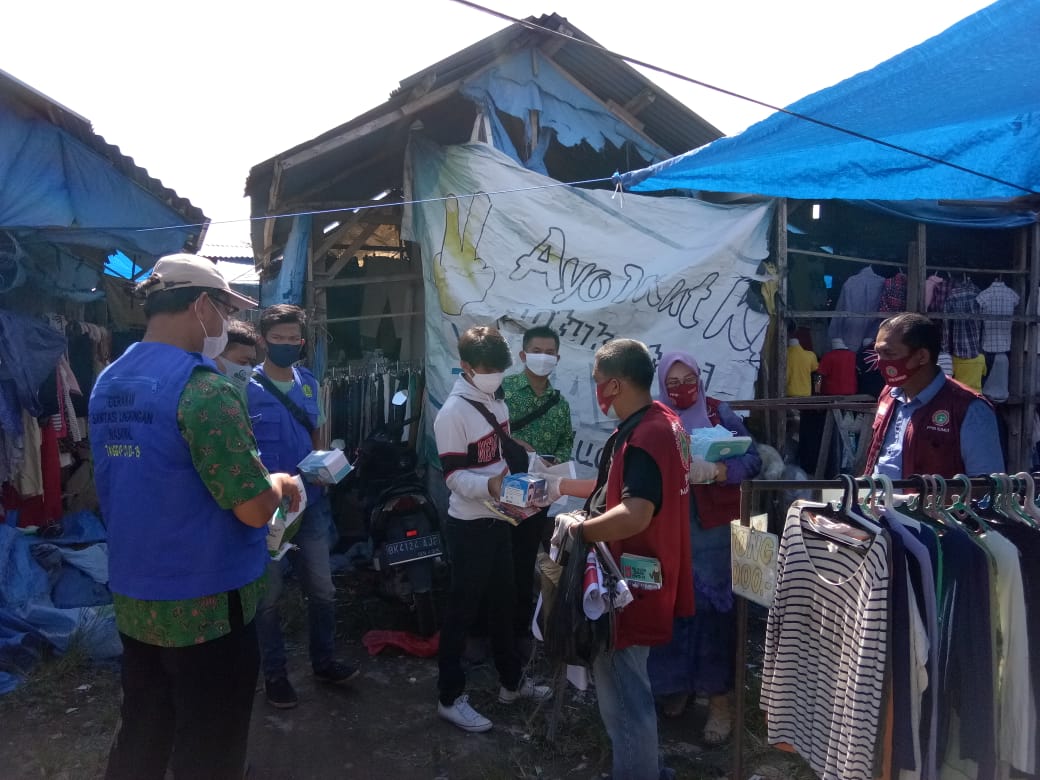 Pada kesempatan itu pula, para relawan melakukan edukasi & membagikan masker,serta leaftlet protocol covid-19. Menghimbau agar dalam kondisi panas terik, bila terasa sesak, boleh saja masker dibuka, disimpan di tempat yang bersih, jaga jarak 1-2 mtr, serta bila ada pengunjung/pembeli masuk toko supaya segera pakai masker untuk saling melindungi penularan covid-19 dari droplet, saat batuk/bersin mau pun saat berbicara dekat atau lagi bercanda dgn pembeli.